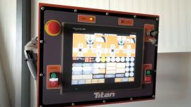 Ke snadnému ovládání pily jsou určeny dva joysticky a 12ti palcový dotykový displej. Displej zobrazuje řezné parametry a tlačítka nastavení, zatímco joysticky ovládají funkce stroje. Vedle dotykového displeje je instalován další displej obrazu dohledových kamer. Ve stávajícím uspořádání může operátor vidět polohu pilového pásu v kmeni, lože za řeznou hlavou, třídící stůl a sloup řezné hlavy.