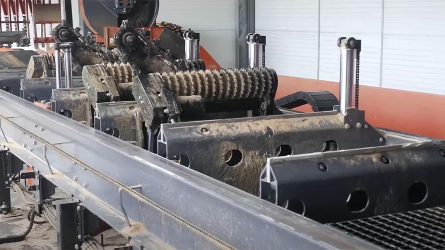 Za pilou je modulární třídící stůl pro automatizovaný příjem materiálu a jeho směrování k dalšímu zpracování. Jednotlivé moduly (každý 3 m dlouhý) lze spojovat do skupin maximální délky 9 m (celkem 3 moduly). Tyto skupiny lze násobit k vybudování třídících skládek. „V Nowakowského firmě jsou třídící stoly elektrické s příčnými řetězy a posunovači. Stůl může být volitelně vybaven řetězy aktivovanými pneumaticky nebo hydraulicky. To je doporučené řešení pro linky, u kterých je materiál odebírán ze dvou nebo více pil pracujících vedle sebe,” vysvětluje Adam Kubiak.