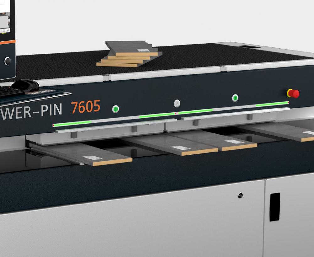 Vďaka flexibilnému systému lepenia POWER-PIN umožňuje prácu so štandardným bielym lepidlom D1 (viskozita 150 – 350 mPa.s.) a drevenými kolíkmi, rovnako ako s kolíkmi s už naneseným lepidlom. Pre dosiahnutie najvyššej spoľahlivosti procesu je možné zvoliť prídavné elektronické monitorovanie nanášacej trysky. Pokiaľ lepidlo nevyteká, zobrazí sa chybové hlásenie a stroj sa zastaví. Tým je zachovaná kontinuálna kvalita spracovania.